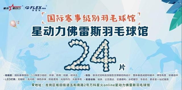 本次公开赛将在7月28日19:00-22:00、7月30日19:00-22:00,于星动力佛雷斯羽毛球馆震撼开赛。星动力佛雷斯羽毛球馆位于深圳市龙岗区坂田街道五和南路2号万科星火online,场馆占地面积近4000㎡,拥有24片标准羽毛球场地,铺设国际赛事级别地板胶、专业运动缓冲地垫、绿色环保LED灯具、一站式服务配套设施。优越的软硬件基础条件,具备日常训练、教学培训、赛事组织等综合能力,为广大羽毛球爱好者提供一个高标准的运动场所及全新的竞技体验。
