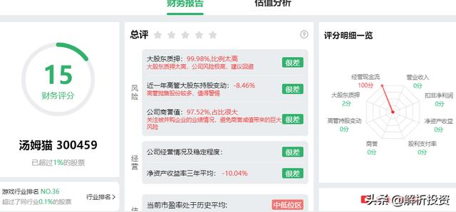 汤姆猫:大股东股权几乎全部质押,不考虑。