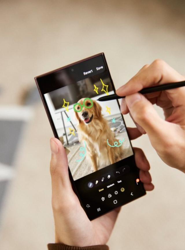 Galaxy S22 Ultra 最重要的改进就是内置了 S Pen 手写笔,号称是“速度最快、响应最灵敏的 S Pen”,支持 Galaxy Note 系列常见的所有功能,包括备忘录、手写文本转换、快速笔记等。