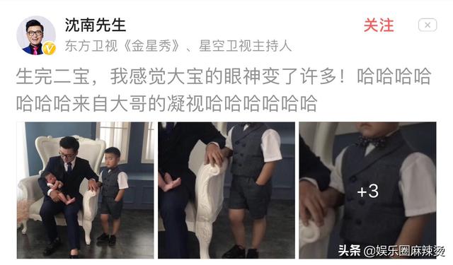 都说看一个男人对待女人的态度,在女人生产的时候,能立竿见影的看出来,在沈南二宝出生的时候,他也是高调的在个人社交平台晒出二胎儿子刚出生不久的照片,还表扬老婆在产子的过程中,全程澎湃,动力爆棚,也表达了对老婆辛苦生产的感恩,看得出来,当时二宝出生的时候,虽然是二胎,但是作为父亲的沈南难掩幸福,多子多福啊。之后,他又晒出第一次帮儿子换尿不湿的照片,从这个细节来看,沈南还真的是个好男人,其实对于他老婆来说,全程陪伴自己生孩子,就是幸福的体贴,女人在生孩子的过程最重要的就是老公的陪伴,如今二宝出生后,沈南的责任更大了。