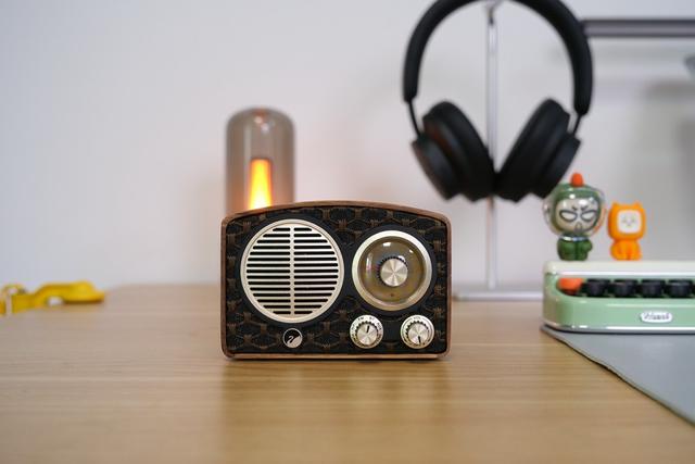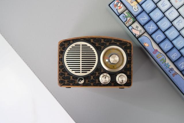 迷你小音箱的优势很明显,便携不占空间,把它放车里当外放设备,或者摆在桌面就可以纵享音乐的美好。诚然,这个复古的设计放在家里任意一个角落都会是亮眼的存在。正面设计一共三枚按钮,还有一个大腔体,整体是有条有理的设计布局。