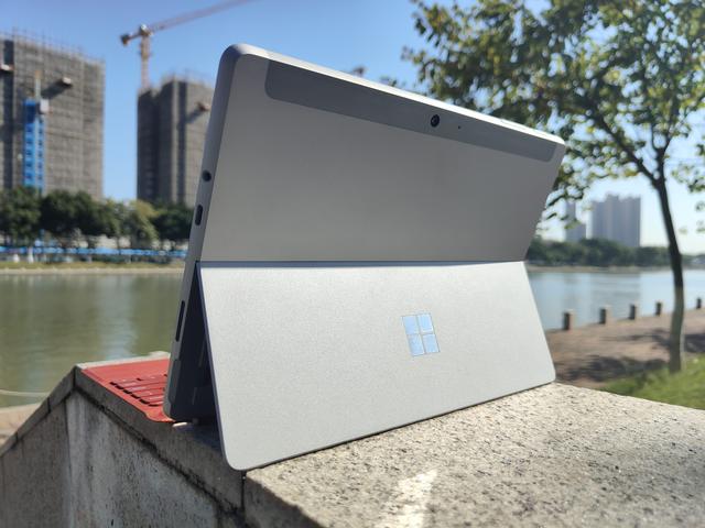 背部支架可以说是微软Surface家族极具辨识度的设计之一,Surface Go 3背部支架采用全阻尼铰链一体式设计,铰链最大开合角度为165°,支架支持无极调节,可以在165°范围内的任意角度悬停。在户外体验的过程中, Surface Go 3的支架几乎可以适配任何一种使用环境,从观影工具,到笔记本电脑,再到手写绘画板,Surface Go 3很好地展现了自己作为“多合一”工具的基础。