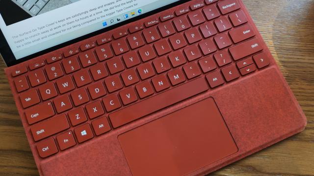 我们的Surface Go 3附带了一个售价968元的波比红 Alcantara键盘,尽管这款键盘的键程仅有1mm,但是微软独特的设计却为这款键盘提供了良好的回弹感,打字干脆利落、轻敏有力,除了键帽偏小这种不可抗力因素以外,个人对于这块键盘基本没有什么不满。准确地说,这篇评测就是利用这块键盘在Surface Go 3完成的,体验非常不错。