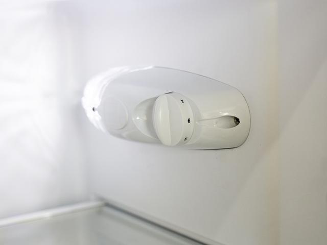 内壁侧面,有温度旋钮0~7档,制冷能力依次增强,传统非电子冰箱都是这种设计。