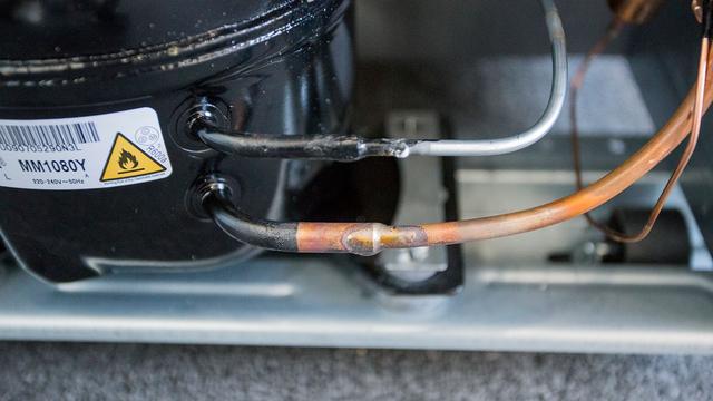 蒸发器的回气管、毛细管、过滤器都是铜管,焊接平整很重要;冷凝器的进气管是铝管,属于标配,特别高端的型号,这里也会用铜管。