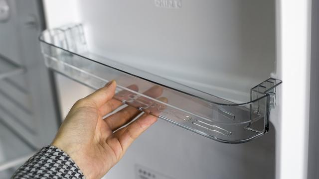 不足:宽度较小,保鲜盒并排放两个有余,放三个又放不下;还是门板瓶架很深,放小瓶饮料太空,开门的时候,因为密封胶条吸得紧,小饮料瓶容易晃掉下来。