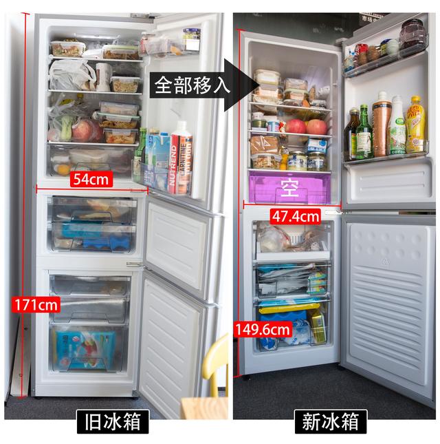 就想试试,把旧冰箱的食物全部搬过去,小米能不能装得下?