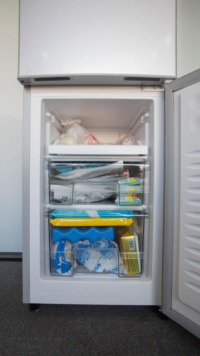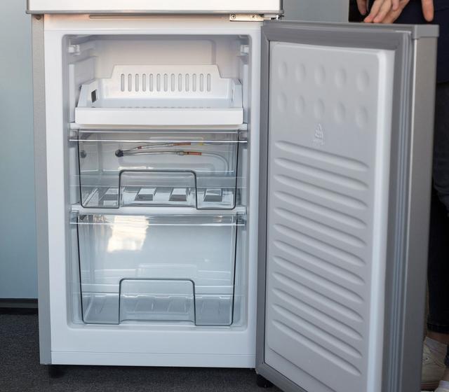 冷冻室上面的微冻区使用托盘,下面冷冻区使用两层抽屉。
