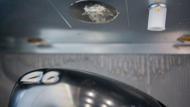接水盘拿下来,能看到充发泡剂环戊烷的口。