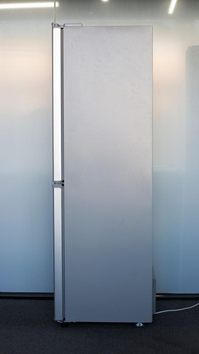 冰箱面板是PCM材质,准确的说是彩涂钢板,浅灰色,亚光,金属磨砂质感;侧面也是PCM,背面是PVC,都是浅灰色涂层。