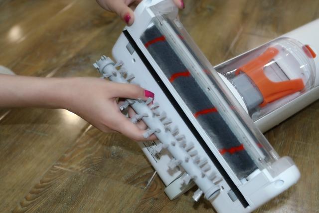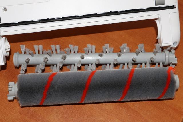 两个滚刷更换也很方便,在滚刷的一端,有一个把手,捏住一拽就可把它拔出来,如果脏了可以取下来用水清洗。