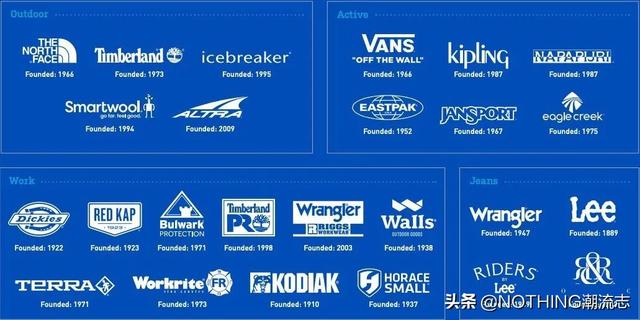 VF的资本收购分为两个阶段,70年代到2000年这一阶段,主要的收购方向是内衣和牛仔品牌领域。2000年之后的第二阶段,主要收购方向为工装,户外运动及潮牌领域。