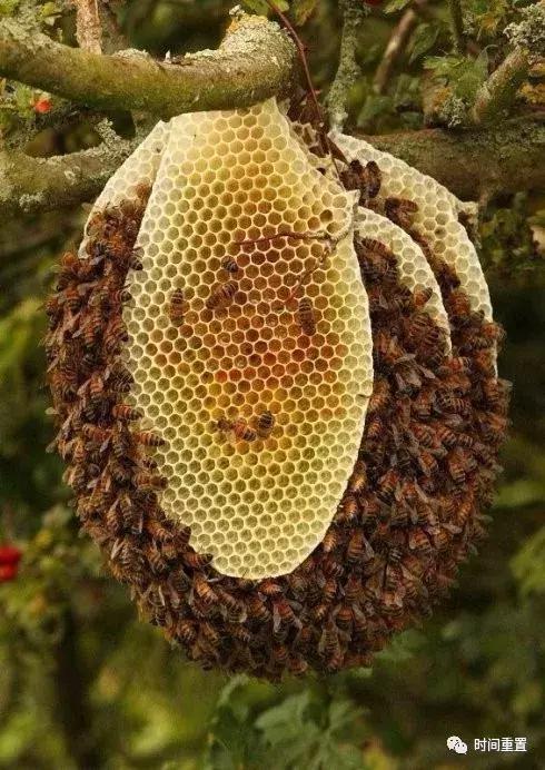 还是这一种,完全没有外壳保护,令所有蜜蜂都聚集在蜂巢外面,而且能够从外面清楚看见一个个六角形蜂房的呢?