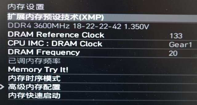 开机后先进入BIOS,内存设置的选项里,记得把“扩展内存预设技术(XMP)”从关闭改成“Enabled”,速度分分钟稳定飙升。