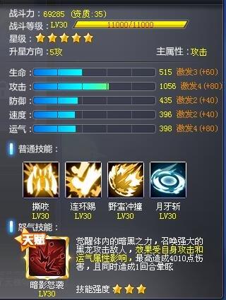 你可知世间尚有魔法?(笑),我觉得这句话,最能形容目前龙王种的地位,不仅具备普通种的特性,而且还有3个攻击属性技能和更高的属性以及战力(目前为止这里指的是两只龙王)所以伤害自然不用说,那么为什么说他有魔法呢?请大家看看上面暗影怒袭的介绍,分分钟给你减一回合,而且有可能你都没眩晕就被干掉了,定位是魔法师+剑士