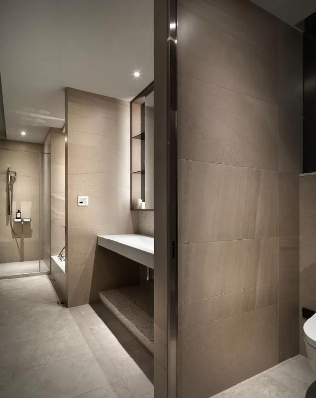 ① 淋浴区湿度大,所有电源配线除了防水也要嵌入墙内。