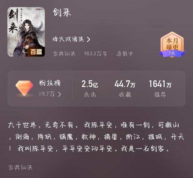 说起烽火戏诸侯,想必喜欢看网文的读者大多都知道。这位早年凭本事拿下大内总管这一名号的大神,这位后来凭本事在网文界封神的大神,他的业绩那可是网文界顶流级的水准。