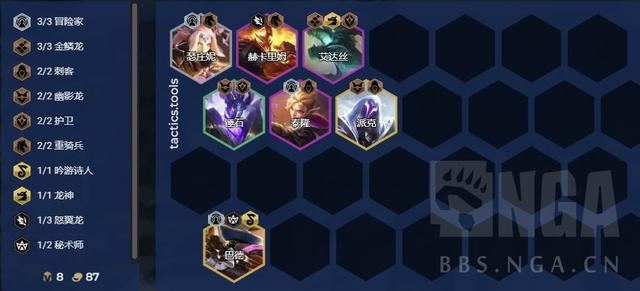 以其核心棋子艾达丝为核心构筑,金鳞龙棋子本身强度也是相当可以,依靠其独特的装备来补足输出,根据出的装备来选择补强的C位(高攻速佳)