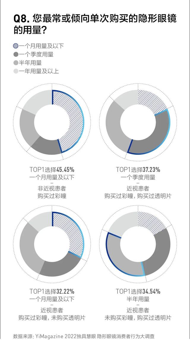 也就是说,对于彩瞳消费者来说,至少在款式上,不存在什么“忠诚度”的概念。在我们的调查中,有近一半的非近视彩瞳消费者每次通常只购买一个月用量及以下的小包装,以便满足常换常新、时刻抓住潮流的需求。这也意味着,相比口红等化妆品,彩瞳拥有更高的复购率。