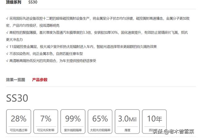 选购任何产品我都是以参数开始了解,衡量车膜总不能商家说什么好就全盘接入,车膜一样,广告语各种花里胡哨,实际上也有几个参数可以衡量车膜的性能。