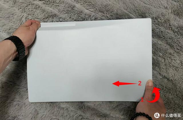 用右手抓住盖子右下角的边缘,用左手抓住盖子左上角的边缘,用右手轻轻提起盖子,然后往左略微用力就可以拿下盖子了。