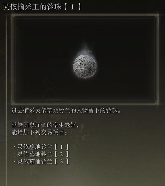 可通过女武神前的圣树底层赐福坐一个向上的电梯,从电梯到达的教堂出去,在附近可以捡到该铃珠