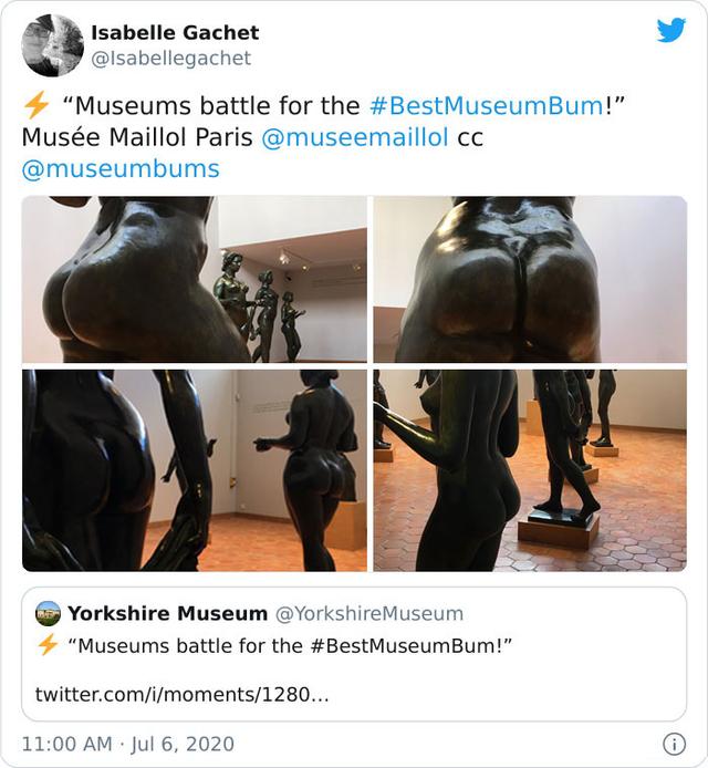 上个月,约克郡博物馆在推特上发起了一项沙雕挑战——博物馆蜜桃臀大赛。