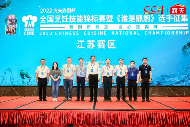 6月23日,中国烹饪协会名厨委主席孙晓春,江苏省餐饮行业协会会长于学荣、资深会长周达志、常务副秘书长葛旭东,江苏省人社厅职业能力建设处主任张鲲、张娟,江苏省财贸经纺工会副主任苗剑东,南京市江宁区商务局副局长许宏亮,海天味业营销总经理魏路、江苏营销总经理曹涛为大赛开幕式剪彩。