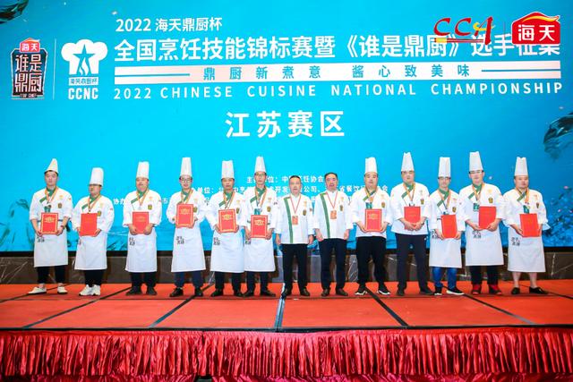 中国烹饪协会名厨委主席孙晓春、江苏省餐饮行业协会会长于学荣、监事会主席赵晓龙、常务副秘书长葛旭东、江苏省烹饪协会会长牛坤、江苏省服务贸易协会会长李俊毅、苏州市烹饪协会秘书长杨晓峰、南京市江宁区餐饮行业协会会长徐永富、海天味业营销总经理魏路及大赛评委组成员为获奖选手颁奖。