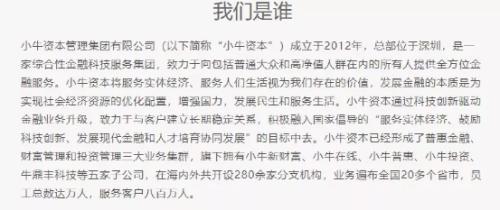 公开资料显示,小牛资本成立于2012年,总部位于深圳,旗下平台包括小牛普惠、小牛在线、小牛新财富、小牛投资和牛鼎丰科技等,业务遍布全国20多个省市,服务客户八百万人。值得注意的是,小牛资本旗下平台小牛在线曾经是广东最大的P2P平台之一,2013年6月正式上线运营,截止2021年1月立案时,该平台累计注册人数超600万,累计成交额已达1171亿元,借贷余额104.2亿元。