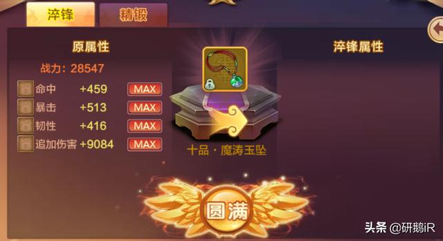 飞升装备精锻:飞升装备可升品,升品后萃锋最大值会改变。具体数据如下图