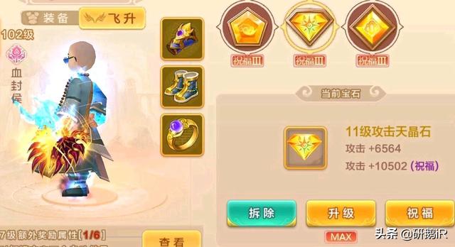 飞升宝石的升级与祝福,相较于普通装备宝石容易的多,很轻松就可以升到满级,祝福到3级。所以一旦到达95级飞升后,宝石能量都要优先用来升级飞升宝石。并且飞升宝石的所有属性祝福比例都很高(可以大幅度提升攻击)
