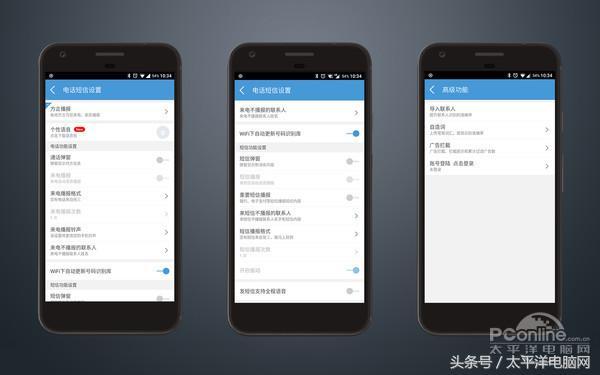 毕竟是和移动联合开发,关于电话短信等的功能设置也异常丰富,其实对于普通用户来说,很少会去逐一研究设置。高级功能里面还能够导入联系人、自造词和广告拦截等,能让灵犀更懂你。