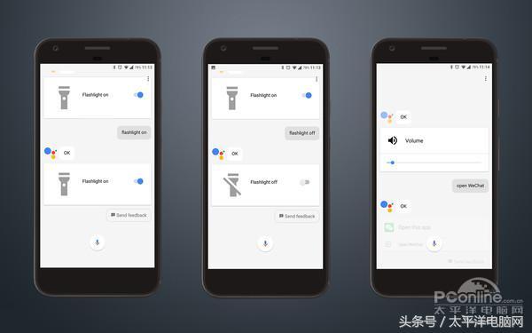 由于GA就是谷歌出品的,又和安卓系统深度结合,开/关闪光灯完全能做到。打开特定应用也是没问题,比如微信。