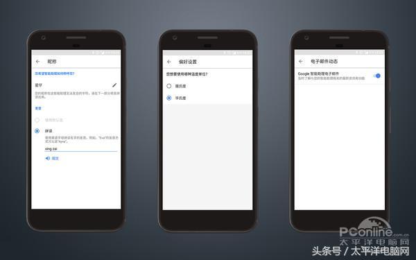 你可以设置好自己的昵称, 就能亲切的叫唤你,遇到不认识的语言,就可以教它怎么读,比如上图。温度设置这个不用解释了,Google智能助理电子邮件,能够推送关于GA的相关信息。GA更多是依赖于谷歌账号,兴趣和偏好直接从账号信息中获取,所以没有小娜那么多的个性化设置。