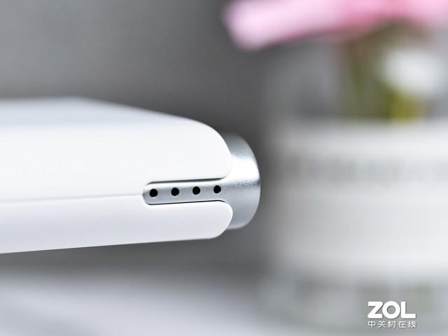 在右边开口处是移动电源的电量指示灯,用来显示充电状态以及剩余电量等。当移动电源处于快充状态时,指示灯就会发出蓝光,而快充没有启动时指示灯就是白光,这样也能方便用户判断目前的充电状态。