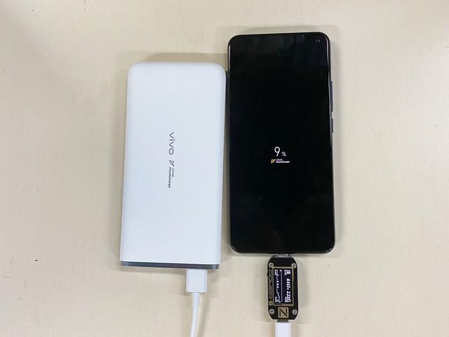 前面提到市面上很多快充移动电源最大的痛点就是放电快,但是再给移动电源充电却是个漫长的过程。而vivo这款移动电源作为一台双向闪充移动电源,它还支持vivo FlashCharge闪充输入,这里我们来测试一下它的充电效率。