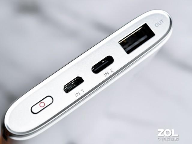在这一面上分布着vivo双向闪充移动电源(22.5W)的两个输出接口(一个USB一个Type-C)和一个输入接口(USB-A),输入输出均支持vivo FlashCharge闪充,最高到22.5W,方便不同的使用人群使用。