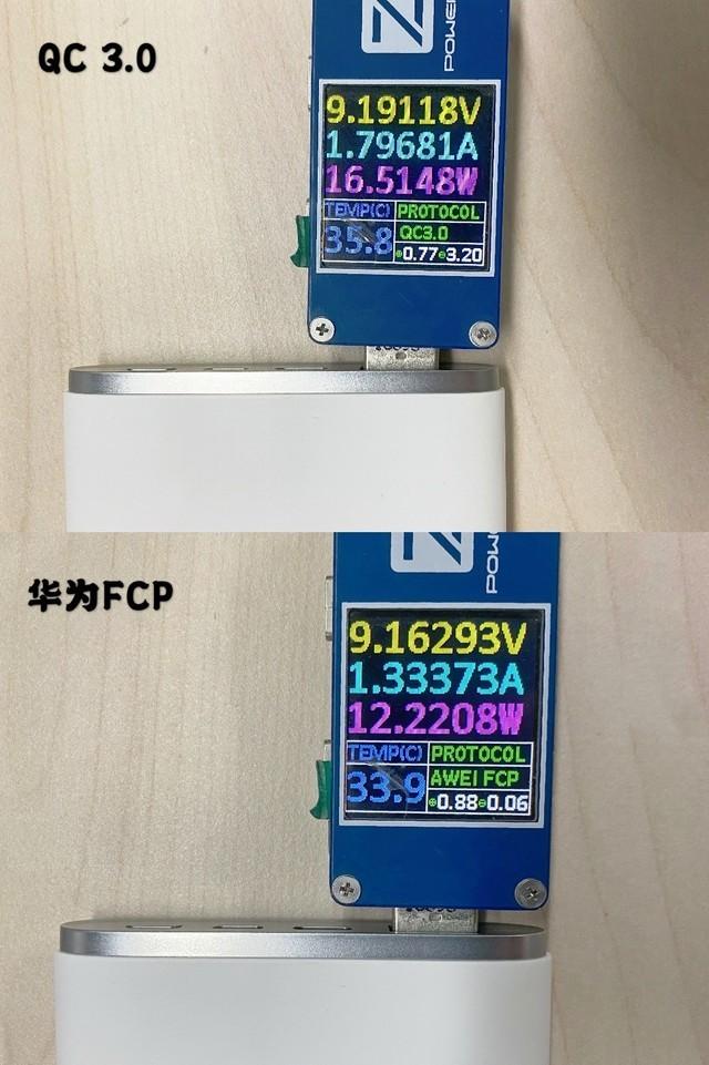 测试结果来看,在QC3.0协议下,vivo这款移动电源的功率能够达到16W左右,而在华为的SCP协议下,充电功率也能达到12W以上。