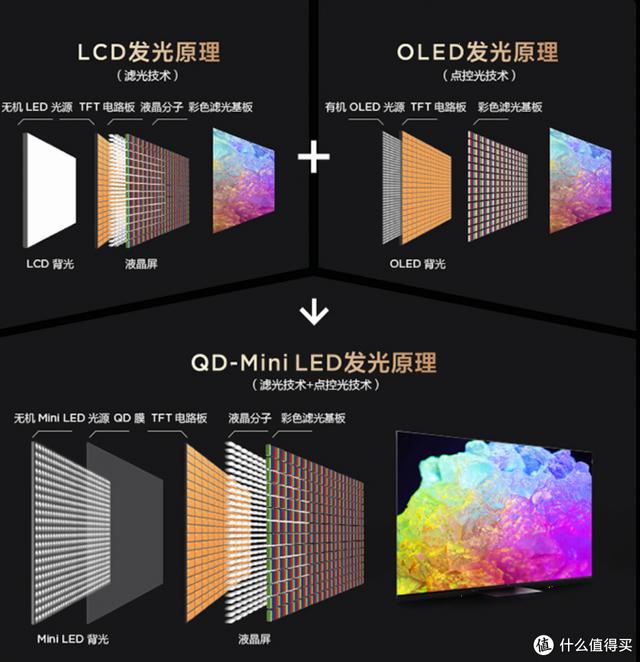 作为 LCD 的进化版本,mini led 因为采用了全新背光设计的LED技术,大幅提升LCD显示屏的画面对比度、亮度和色域,而且可以将显示器厚度做的极薄,也更加节能。最关键的是,今年 mini led 电视开始正式发力,出现了不少性价比极高的机型。