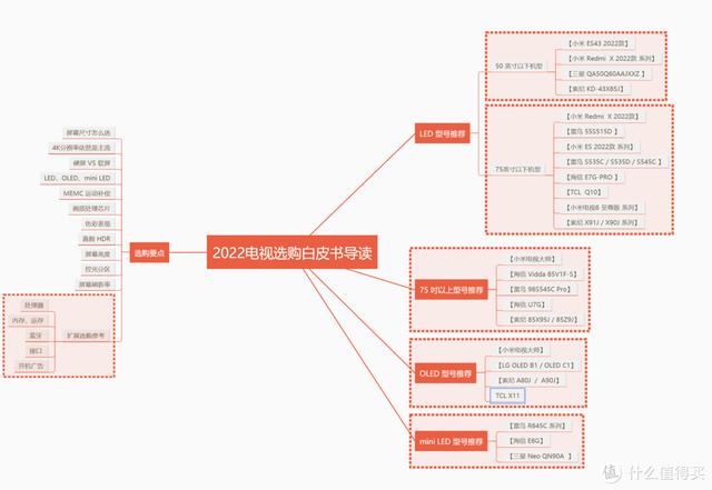 这篇文章是小值约稿,和大家分享一些电视选购的个人理解。本文篇幅较长,字数超W,建议收藏以后慢慢看。主体脉络如下图,不喜欢看参数科普的朋友可以直接调到后面的型号推荐段落。