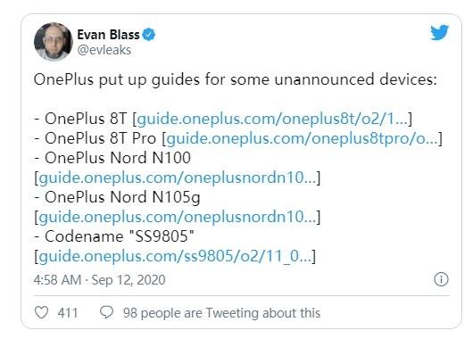 该网站还列出了 OnePlus 8T Pro,这驳斥了最近一份声称 Pro 型号不存在的报告。不确定这两款机型会有什么不同,但之前的报道显示,8T Pro 可能会配备 6400MP 主传感器,两者都可能会支持 65W 快充。