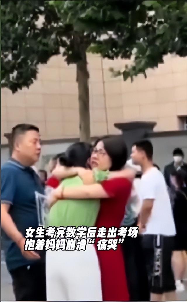 2022年高考第一天,山西某考点的一个女生感觉自己的数学发挥得不太好,走出考场后就抱着妈妈崩溃痛哭,在一旁等待的父亲满眼都是心疼。