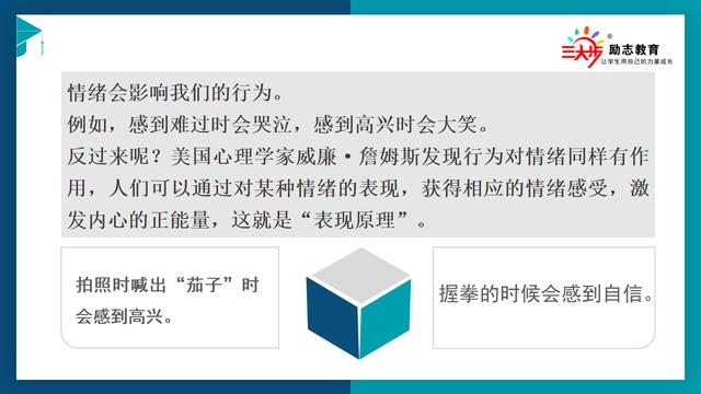 通过讲述心理学上的“表现原理”,告诉学生们,行为可以影响情绪,做一些开放的、霸气的动作,自己会变得更自信、更有勇气去赢。