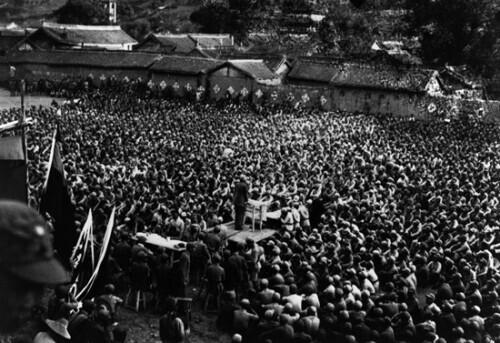 抗日战争时期,在延安召开了一次群众大会。本版所有图片均由视觉中国提供。2009年8月29日,北京,中南海新华门影壁上的题词“为人民服务”是毛泽东所写。1938年5月。毛泽东在延安写...