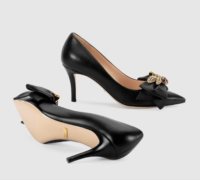 上午一篇文章专门讲了Gucci白色和银白色高跟鞋,如前文预告所言,今天再带领大家欣赏5款2018年Gucci的新款黑色高跟鞋,让你感受一下经典黑色的传奇。Gucci黑色蝴蝶结皮革高跟鞋上图中的尖...