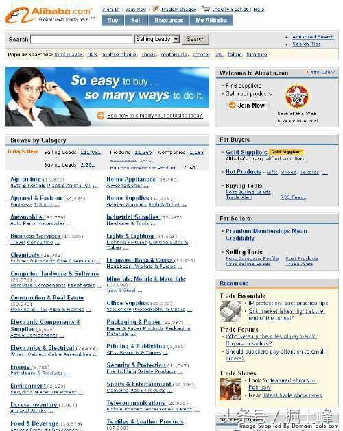 2006年的阿里巴巴官网,从网页中下划线可以看出,那是的网页制作还很粗糙。2007年的网页也没有多少变化。到2009年,网页的设计明显上了一个台阶,这种3列式的布局在当时很流...