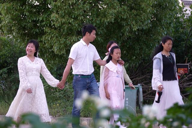 蓝天白云下,47岁的余秀华穿着白色婚纱站在玫瑰花丛旁。对象穿着灰色西装从身后搂住她,她靠在他怀里,手轻轻扣住对方。在摄影师的指挥下,两人说着笑着。日前,余秀华和杨槠策在湖北荆门一个景区拍摄婚纱照。这些照片...