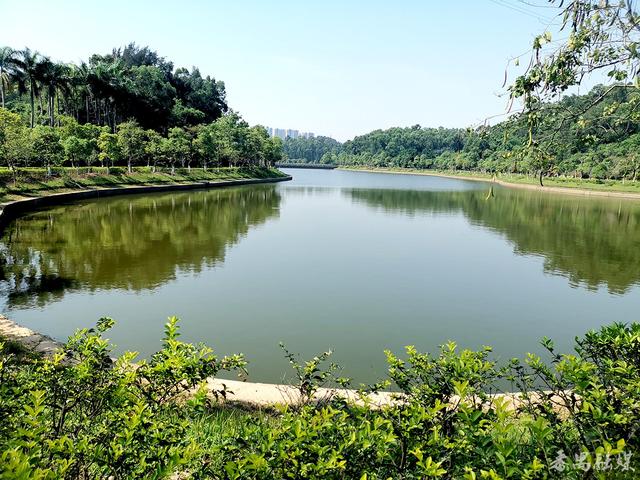 走进番禺区金山湖文化公园,湖水清澈、山峦苍翠、天空碧蓝,勾勒出一幅迷人的暖冬滨水景观;幽静的环境、新鲜的空气、绿树成荫的环湖步行道,使这里成为附近居民休闲的好场所。