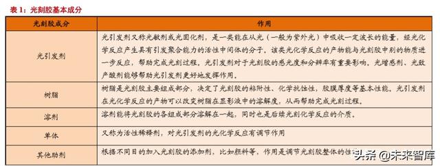 获取报告请登录未来智库www.vzkoo.com。1. 光刻胶是电子制造重要材料1.1. 光刻胶广泛应用于电子行业光刻胶又称光致抗蚀剂,是一种对光敏感的混合液体。其组成部分包括:光引发剂(包括光增感剂、光...